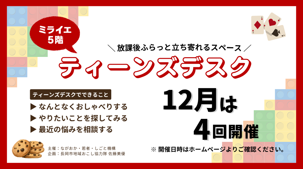 【毎月開催】中高生限定のフリースペース「ミライエティーンズ部」 12/26