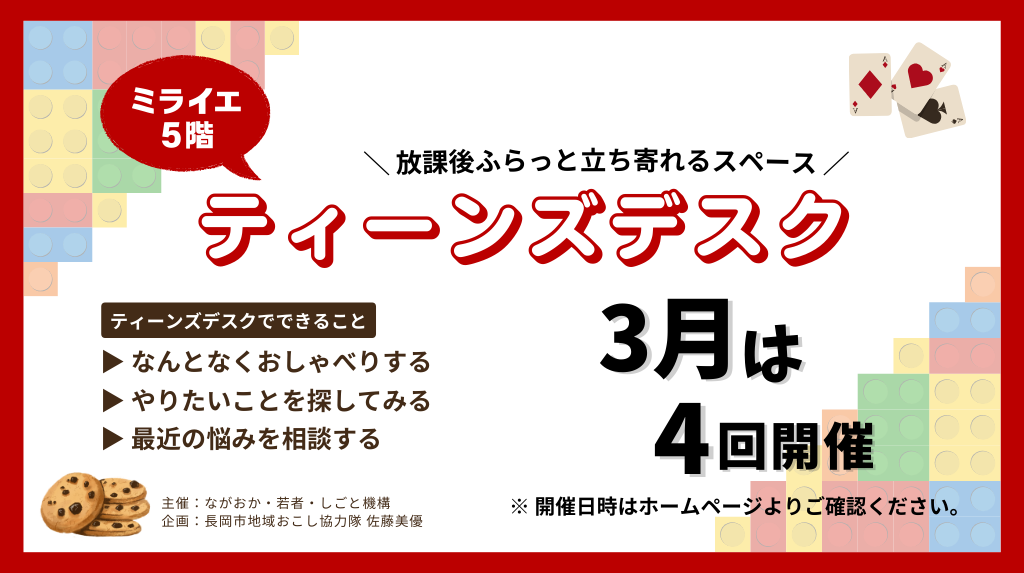 | 10 Tue | ![]() 中高生のための相談窓口「ティーンズデスク」 |