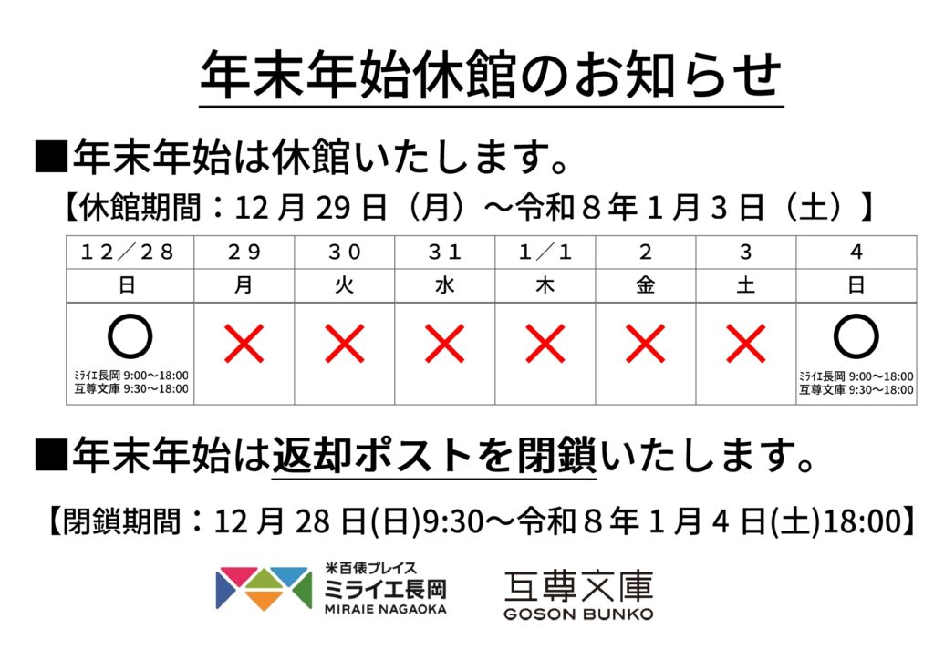 年末年始休館のお知らせ