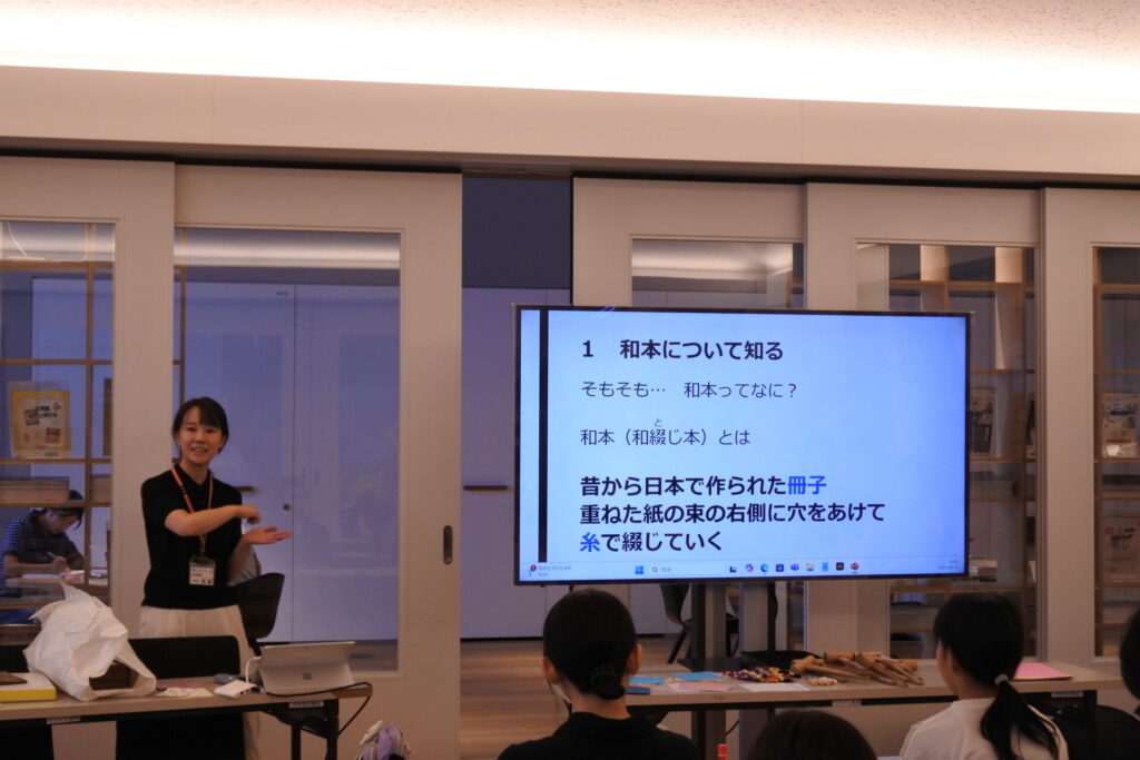 「江戸時代の本にふれよう! ―和綴じのミニ本づくり―」は、長岡市立化学博物館 学芸員の武藤真由さんが教えてくれました。