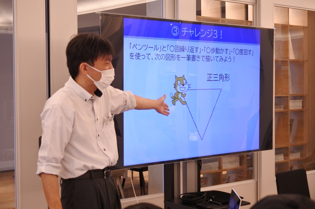 プログラミング言語の一つ「スクラッチ」を使ったプログラミングの体験講座です。