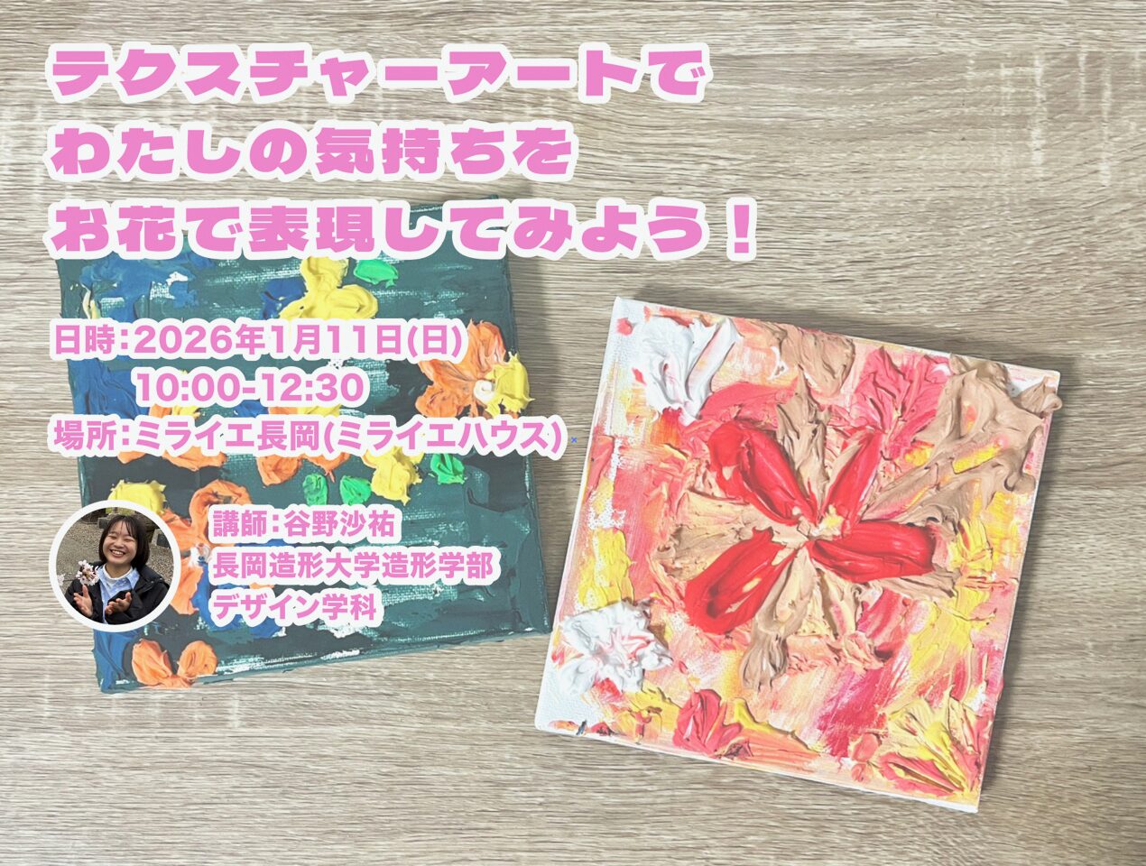 会場①2月7日(土) ミライエ長岡 5F ミライエステップ ②2月14日(土) ミライエ長岡 3F ミライエハウス