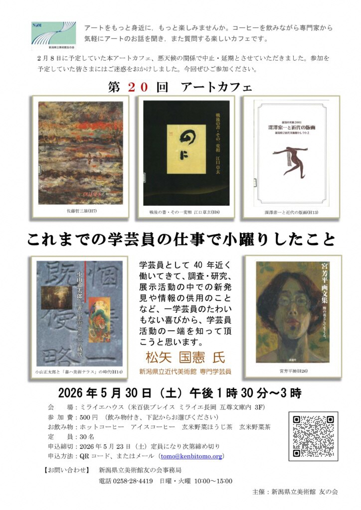 イベントURL:第20回アートカフェ 開催のご案内 – 新潟県立美術館友の会<https://kenbitomo.org/20th_artcafe/>