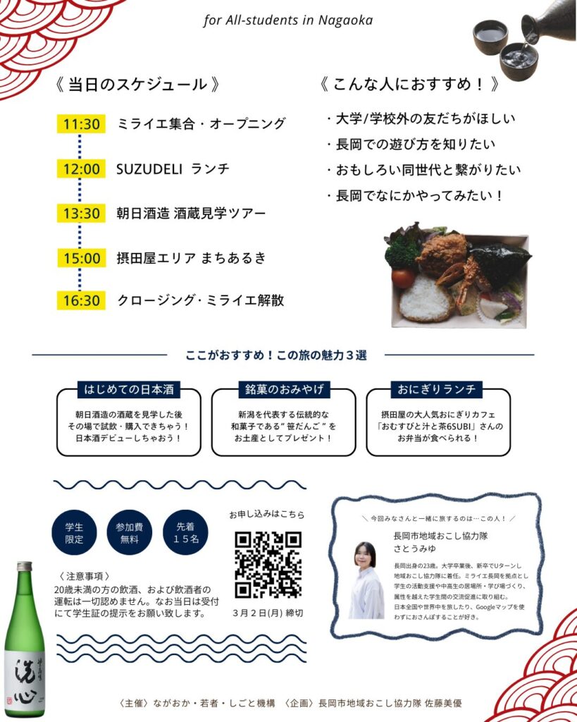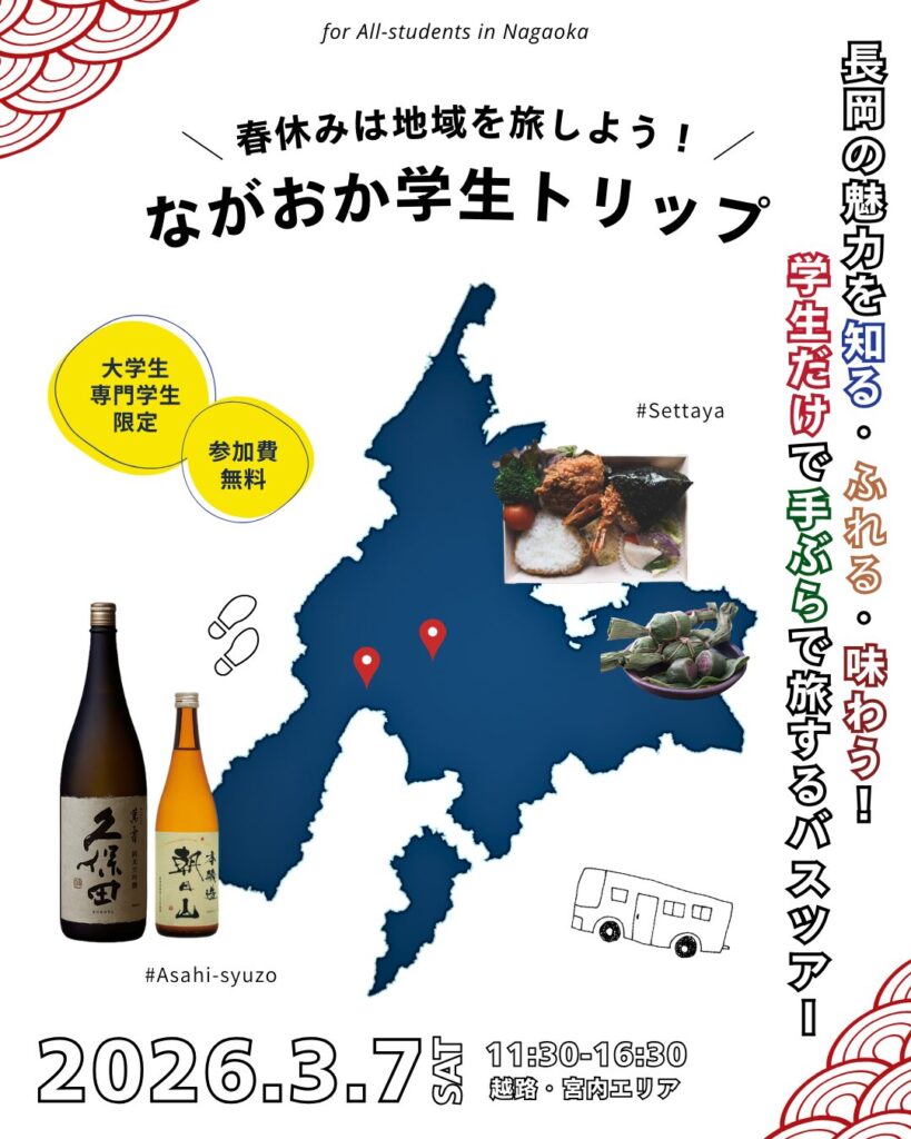3月7日(土)に大学生向け交流イベント『ながおか学生トリップ~長岡の魅力を知る・ふれる・味わう!学生だけで手ぶらで旅するバスツアー~』を開催いたしました!