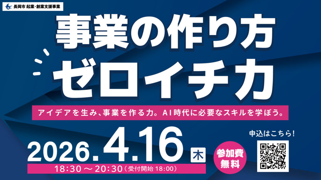 ゼロからイチを生み出す力が、これからの時代を切り拓く。 『起業は、才能ある人だけのものではない。』 … 続きを読む 【4/16開催】事業の作り方 -ゼロイチ力-
