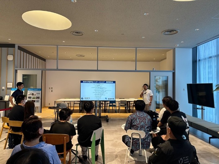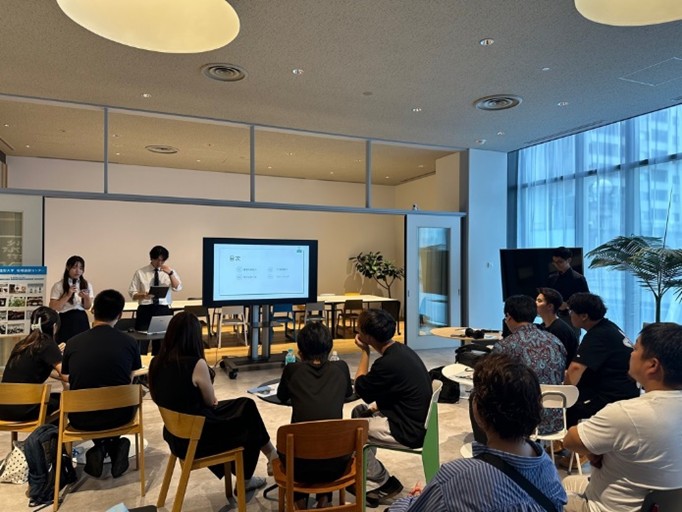 最終日には、東洋大学の留学生が市内企業で取り組んだインターンシップの成果報告を行いました。